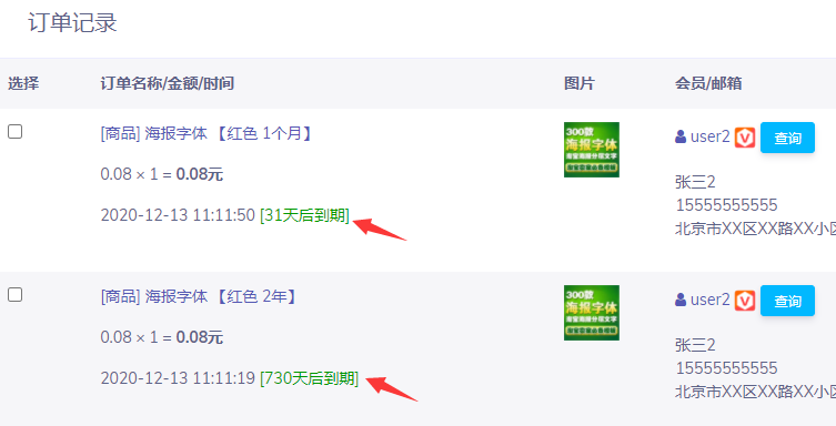 五八零云商城系统为有时限的订单加入了到期天数显示及到期邮件提醒。