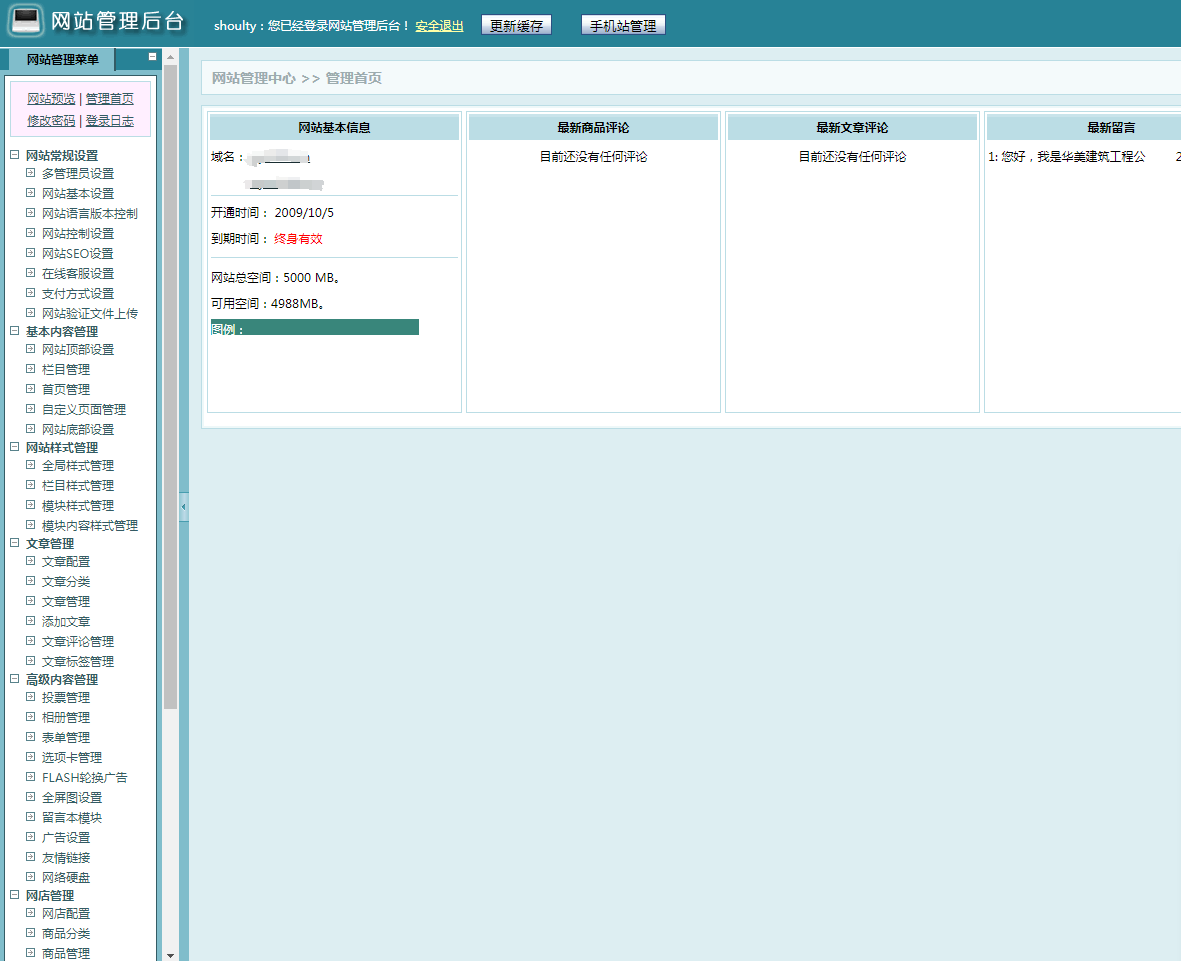 一次付费,终身免费使用。以后不再支付任何费用。域名自备,支持多域名绑定(支持中文域名)。5GB空间,商品销售功能,照片/相册功能,文章,评论,表单,留言,在线支付,多管理员,会员,IP限制功能,404自定义,301重定向,Sitemap,在线客服,论坛等功能应有尽有。
