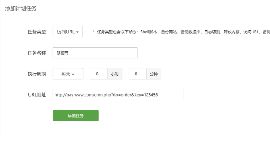将 订单统计任务 与 自动生成结算任务 的网址添加到宝塔的《计划任务》功能中,具体参数如下图所示。