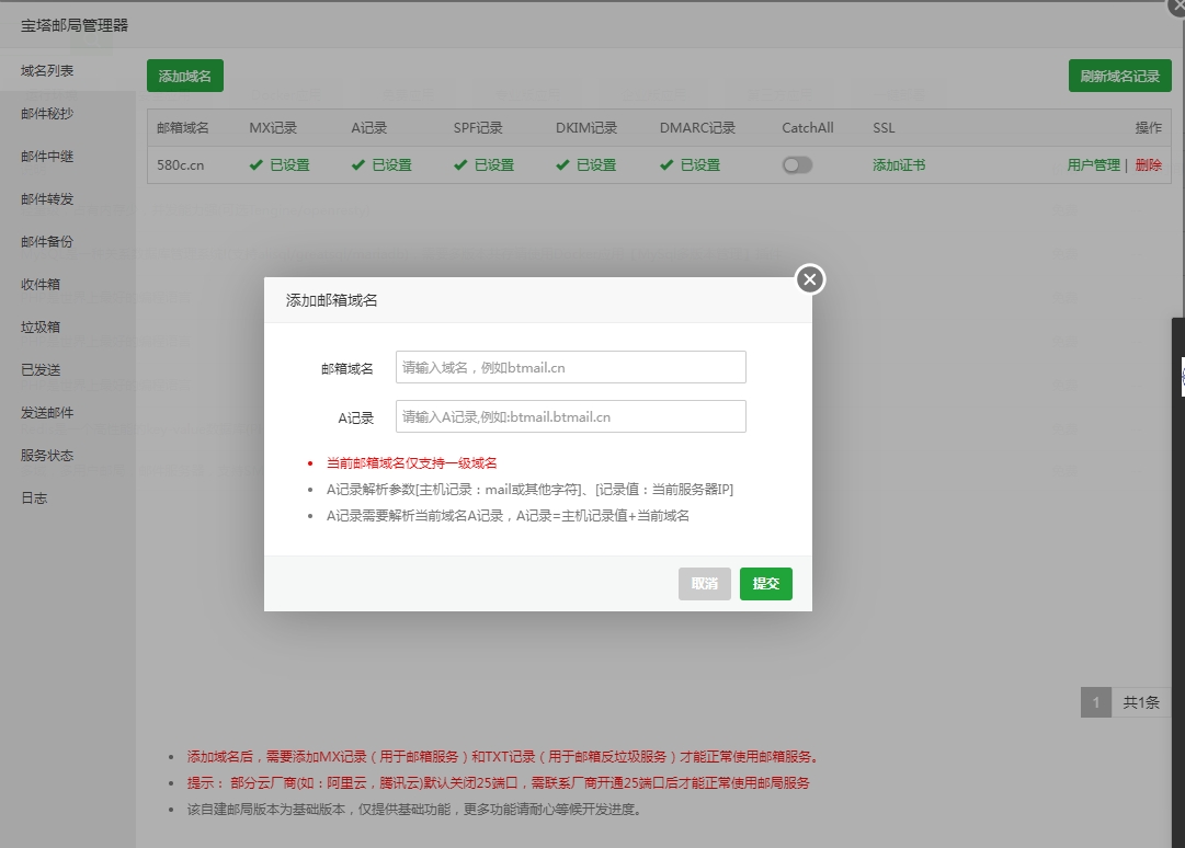 我选择面板自带邮局。因为这是宝塔面板的免费插件之一,安装方便操作非常简单,相信大部分个人站长都有使用各类面板的经验。去下载面板